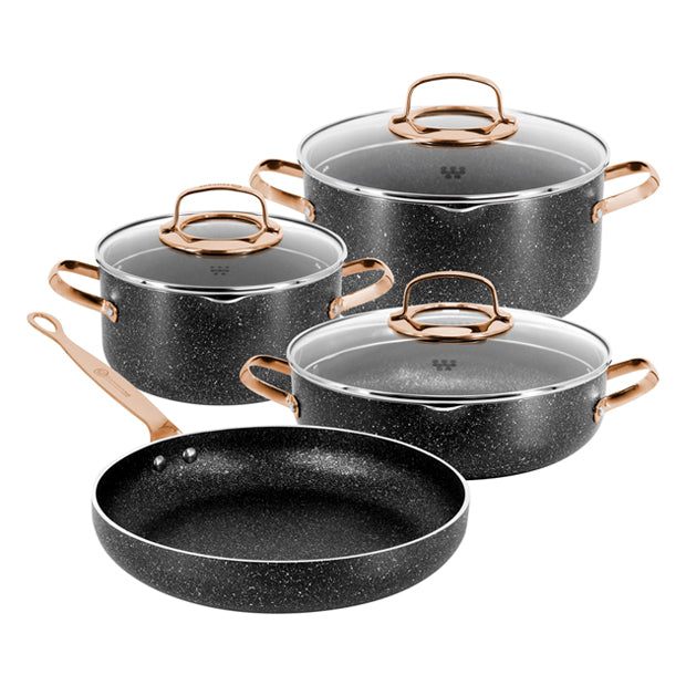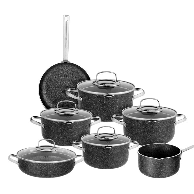 Shop NowDurable granite cookware with non-stick coating, 220°C heat resistance, and dishwasher-safe conve...